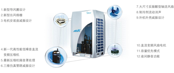 利用CFD、FEM等先進(jìn)技術(shù)對空調(diào)系統(tǒng)的元器件振動源進(jìn)行優(yōu)化,實現(xiàn)靜音運(yùn)轉(zhuǎn),夜間運(yùn)行模式把噪音降低到最低。